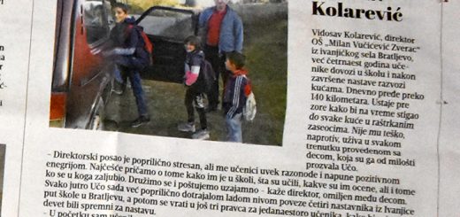 4.303 Vidosav Kolarević, direktor OŠ ’’ Milan Vućiževiž Zverac’’ iz ivanjičkog sela Bratljevo, našao se na listi 20 veličanstvenih ljudi koji su svojim nesebičnim delima, požrtvovanošću, borbom za kulturnije i osvešćenije društvo oplemenili 2018....