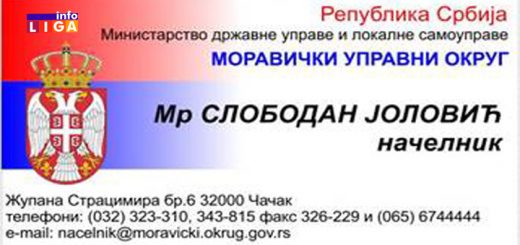 1.996 Načelnik Moravičkog okruga mr Slobodan Jolović zakazao je zajedničku sednicu Saveta Moravičkog okruga i Okružnog štaba za vanredne situacije za utorak, 12. novembar 2019. godine u 11 časova u sali Sreskog načelstva u...