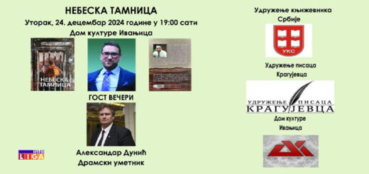1.383 Promocija zbirke pesama i poema „Nebeska tamnica“, autora Petra Todorovića, biće održana u utorak 24. decembra u 19 časova u Plavoj sali Doma kulture. O svojoj Zbirci pesama autor kaže: „ Nebeska tamnica...