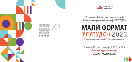 1.457 U petak, 22. septembra 2023. godine, u 19.00 časova, biće otvorena tradicionalna izložba Malog formata Slikarsko-grafičke sekcije ULUPUDS-a u holu Doma kulture Ivanjica. Na izložbi će se svojim radovima u malom formatu predstaviti...