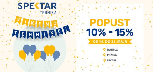 2.134 Vikend tehnike u Spektru! Poklanjate, opremate? Ni ovoga maja vas nećemo izneveriti! Tradicionalna akcija “Vikend tehnike” je najbolja prilika za kupovinu. U periodu od 19.05 do 21.05. iskoristite neverovatnih 10% popusta na asortiman...